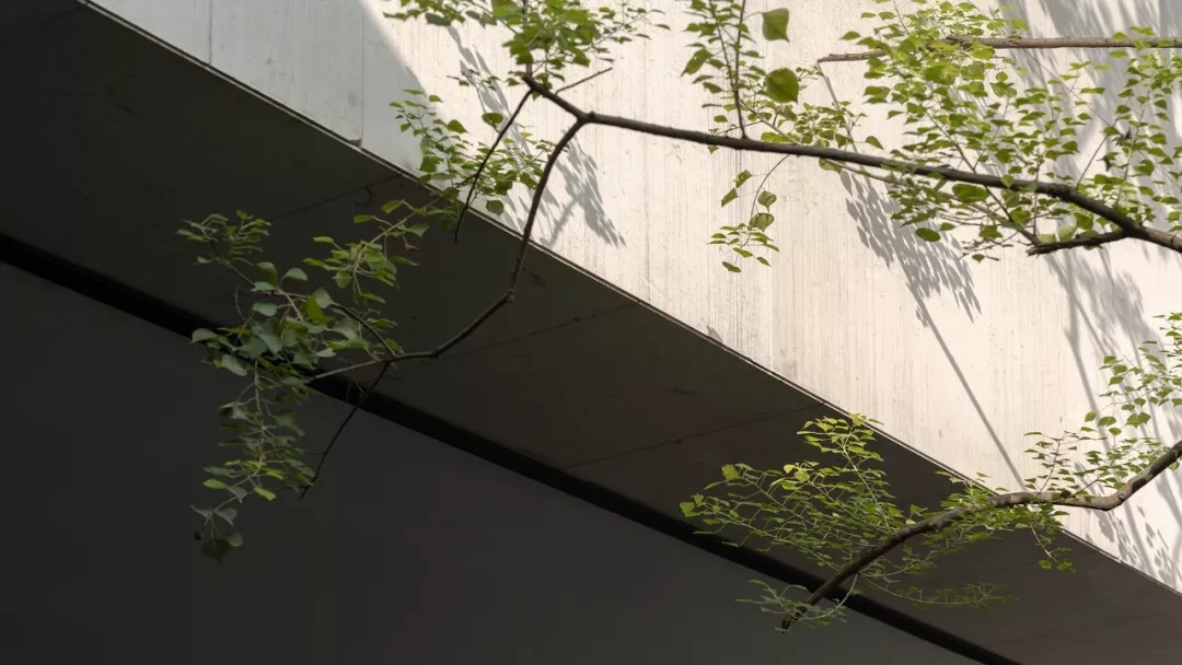 站在落窗旁,凝神而望,夯土、老木、绿叶枝丫,感受着流淌于室内外的、来自于自然的纯粹与安宁,庭院的翠绿与不远处照母山森林常青的香樟互为映衬……这一隅在城市生活空间里变成为难得的精神寄托之地。
